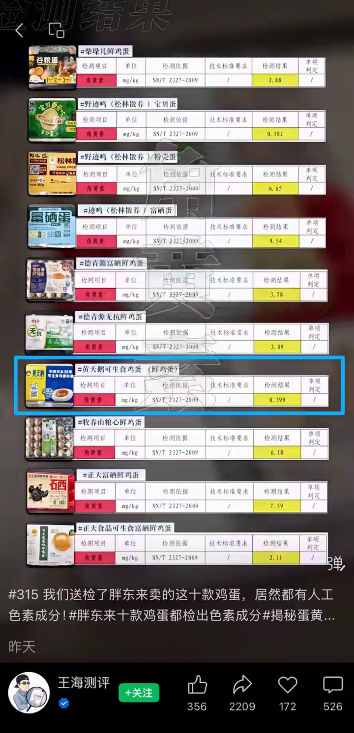黄天鹅鸡蛋被检出角黄素0.399mg/kg,打假东谈主王海咬定是东谈主工添加,创举东谈主冯斌坚称自然本底。这场争论名义是食物安全问题,背后却是生意利益与糜费信任的强烈碰撞。